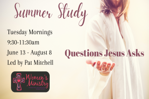 Jesus asks many questions in the Gospels that have the power to engage us. Jesus invites us to inquire, reflect and discuss the questions. In this study, we will dig into some of the questions that shape our view of Jesus and ourselves. Join us for Bible study, teaching, small group discussion and refreshments.